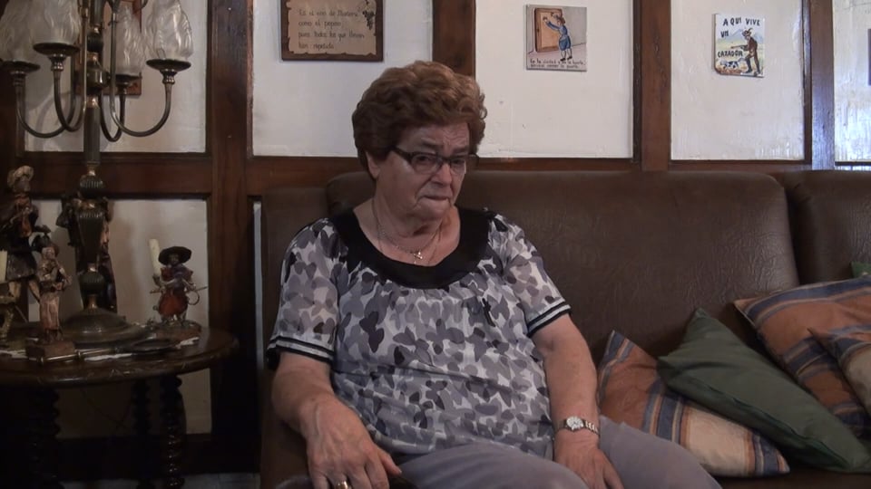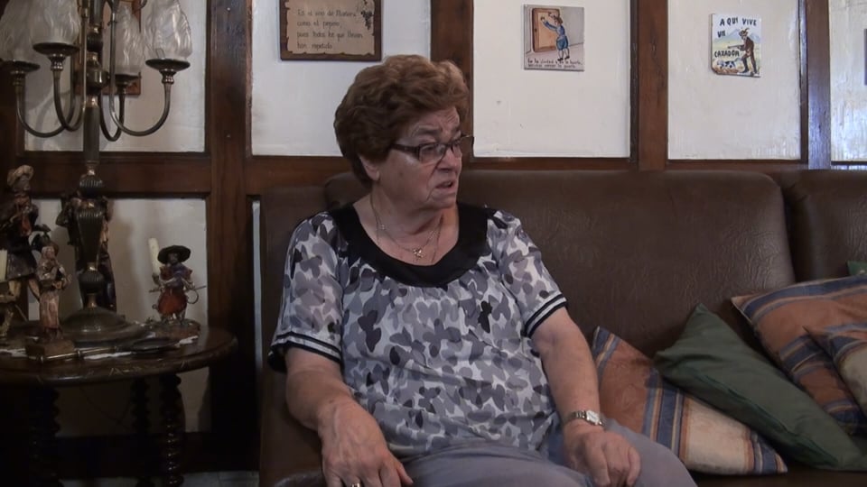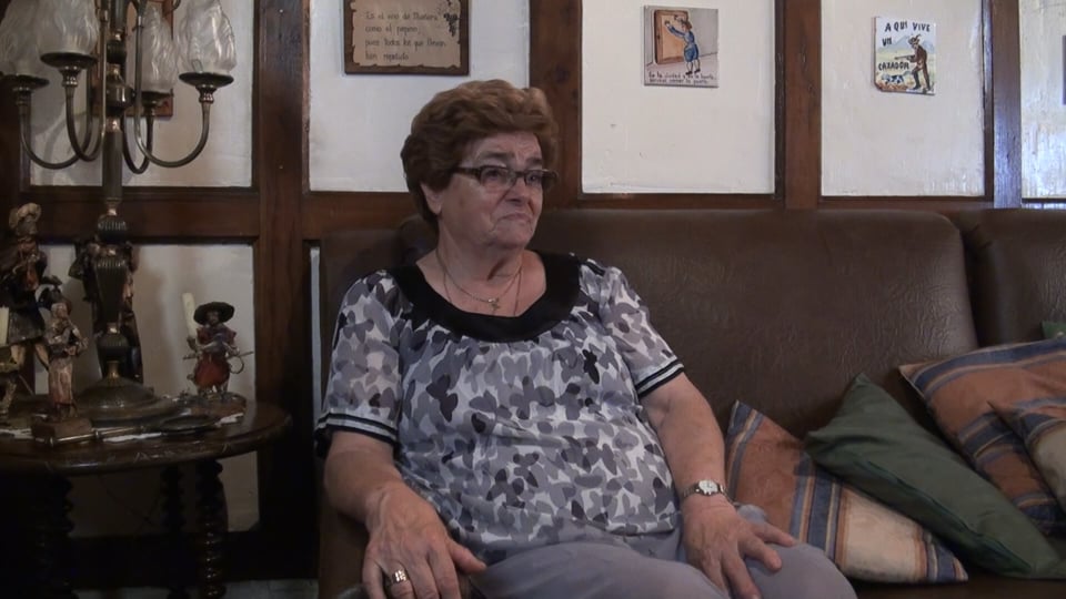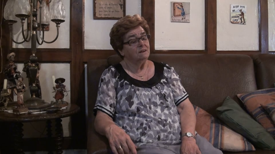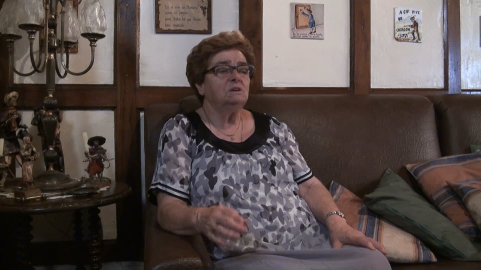 Nació en Galdeano en 1926. A los 3 meses ya fue toda la familia a vivir a Mañeru. Con 15 años se fue a estudiar costura a San Sebastián. Es soltera pero lleva desde los 25 años ayudando a su hermana que tuvo 16 hijas/os. Viven juntas en Pamplona.
