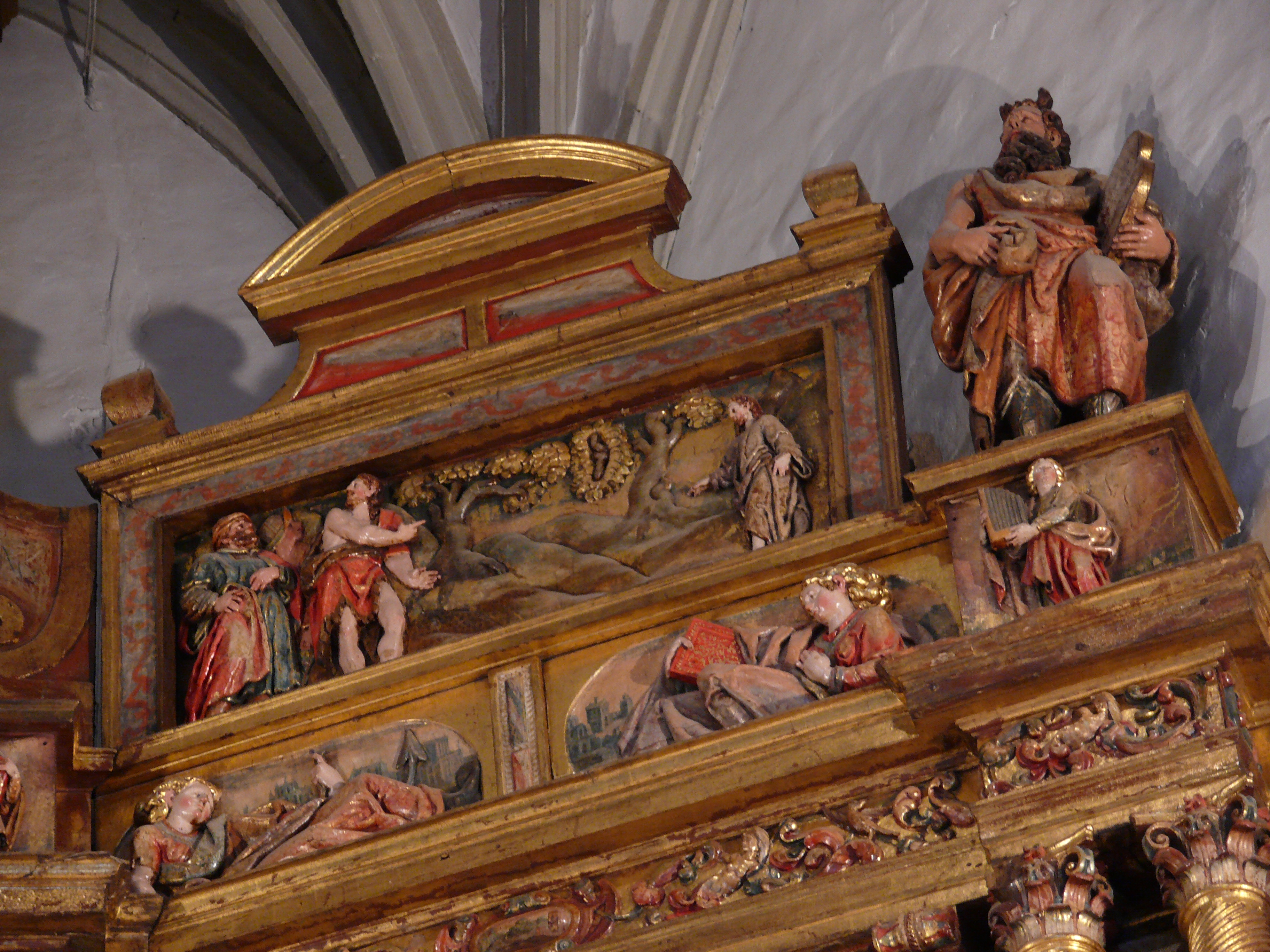 Parroquia de la Asunción. La construcción de la parroquia de la Asunción arranca del siglo XVII, cuando en 1561 se le pagaba al cantero Martín de Aguirre, sin embargo las obras se dilataron hasta comienzos del siglo XVII ya que en 1604 se firma un nuevo contrato con el también cantero Juan de Sarasti. Estos maestros construyeron un templo gótico-renacentista, de amplia nave con cuatro tramos —el del coro añadido en 1863— que se corona en cabecera poligonal. Como cubierta se extiende una bóveda de nervios estrellada con claves decoradas. Por el lado del Evangelio se adosa una capilla del siglo XVI, antiguo patronato de los Azpilicueta, familia a la que pertenecía el Doctor Navarro. Al exterior resalta la fachada de sillería flanqueada por dos torres gemelas. Fue levantada en 1863 a expensas del arzobispo de Manila, José Julián de Aranguren, hijo de Barasoain, según modelos clasicistas. Pieza importante dentro del ajuar de esta parroquia es el retablo mayor, obra de 1617, cuya mazonería se debe a Domingo de Bidarte, mientras que la escultura se le atribuye a Juan de Angulo. Su traza, con la pureza arquitectónica del Manierismo, sirve de marco a un programa iconográfico de relieves y bultos dedicados a numerosos santos escenas de la Pasión de Cristo y Vida de la Virgen, todo ello concebido con la monumentalidad y fuerza contenida propia de la escultura romanista. El retablo conserva la policromía original que lo realza. El mismo ensamblador Domingo de Bidarte realizó el retablo lateral de San Bartolomé en 1616. Una buena muestra de la escultura gótica del siglo XIV es la talla del Crucificado.